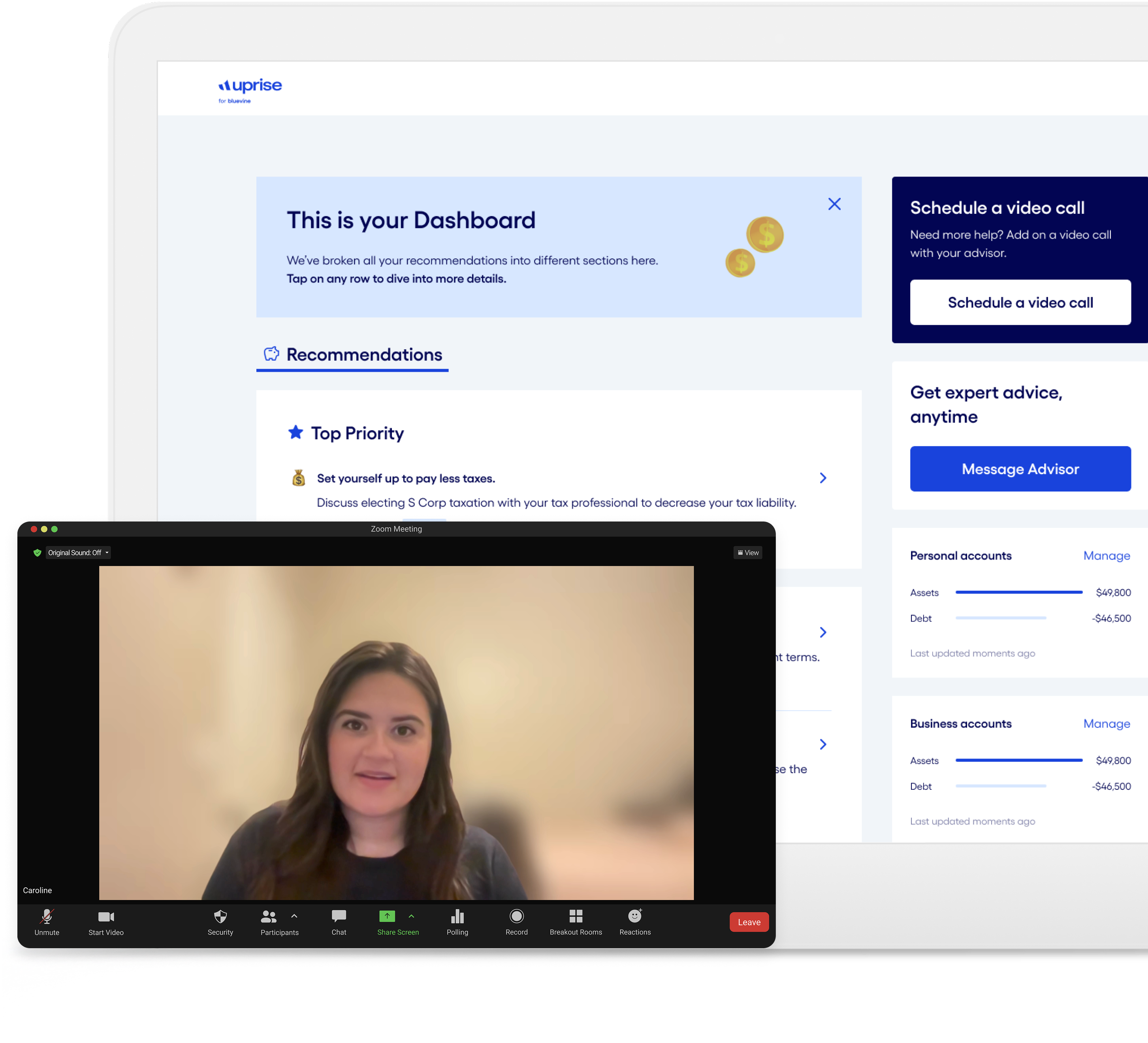 Uprise Financial Planning for Bluevine is a co-branded partnership between Bluevine Inc. and Ontrail Inc., doing business as 'Uprise.' Bluevine directs users to Uprise, where they may engage Uprise to obtain small business financial planning services. Uprise's services are aided by the use of AI which may contain errors and inaccuracies. Bluevine does not guarantee the accuracy or completeness of any advice provided by Uprise. Users should carefully review and may seek independent review before making decisions based on the recommendations. Bluevine may share user information with Uprise in connection with Uprise's provision of services. Consult Uprise's Privacy Policy for details on how it uses and processes user information.